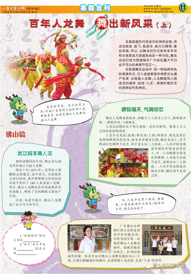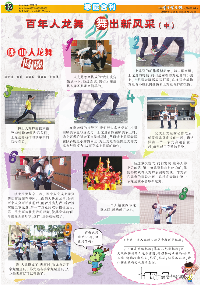 2019年2月在《小学生学习报》刊登的《人龙舞揭秘》↑