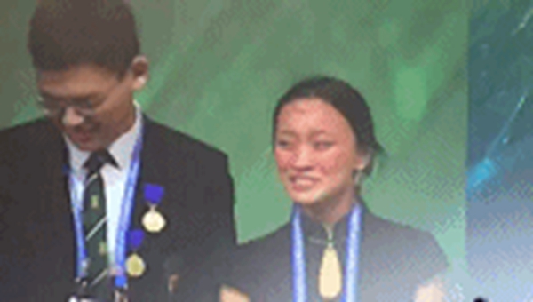 三等奖开始颁发,第一个学科就是Animal Science动物学,“from Hong Kong”在全场回响的时候,只见一大一小两个孩子从椅子上蹦起来,相互呼唤着奔向领奖台。穿着旗袍的叶若言同学站上领奖台的一刻,泪水奔涌,哈哈,天道酬勤!杨沐华和叶若言以动物学项目《异形入侵香港》为香港队摘下今年的第一块奖牌。