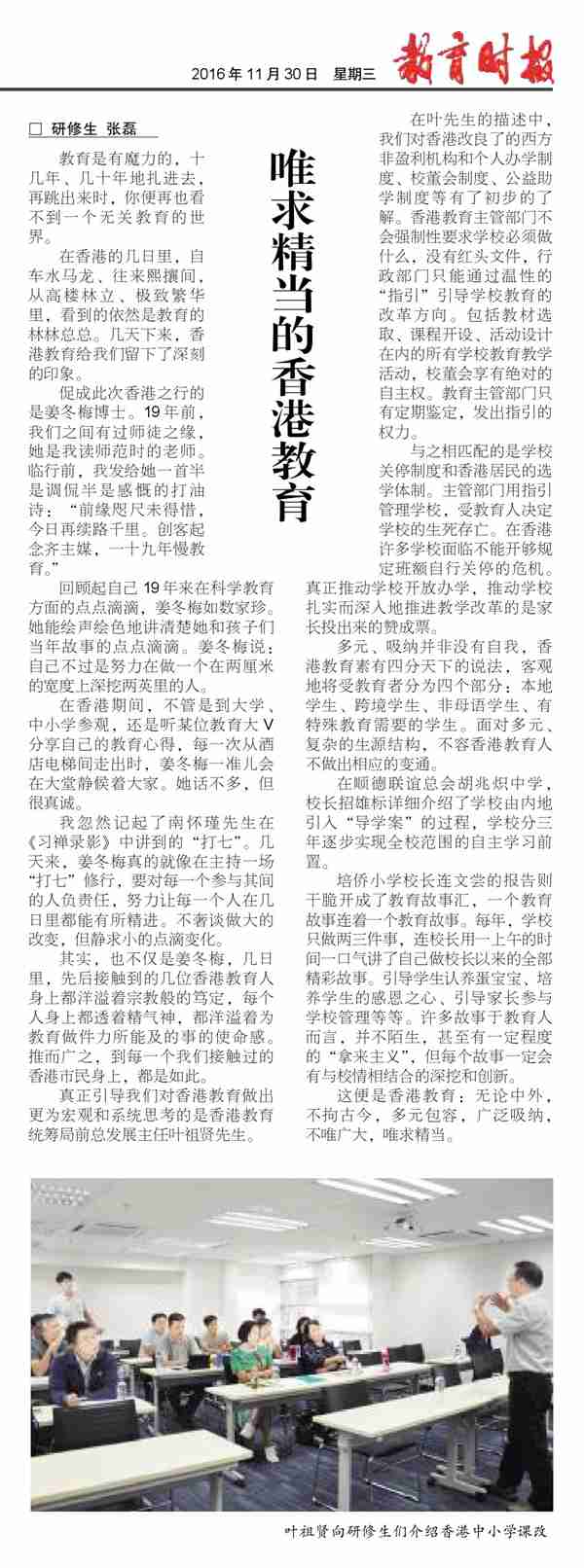 真正引导我们对香港教育做出更为宏观和系统思考的是香港教育统筹局前总发展主任叶祖贤先生。