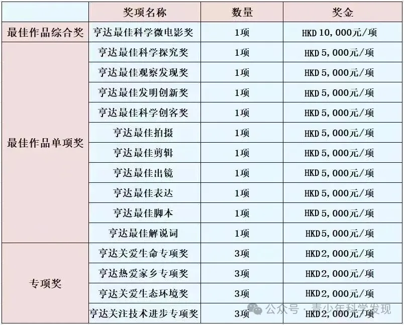 为表彰科学教师在辅导学生参与科学影像活动中做出的努力,鼓励更多教师积极投身科学影像教育,本届大赛特设“最佳科学教师奖”,获奖者将获得由蓝鲸博士捐赠的5000元港币以资鼓励。